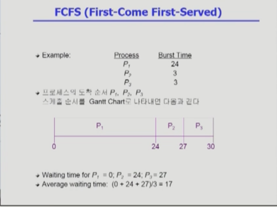 선입선출 스케줄링(FCFS)에 대해 설명해주세요.
