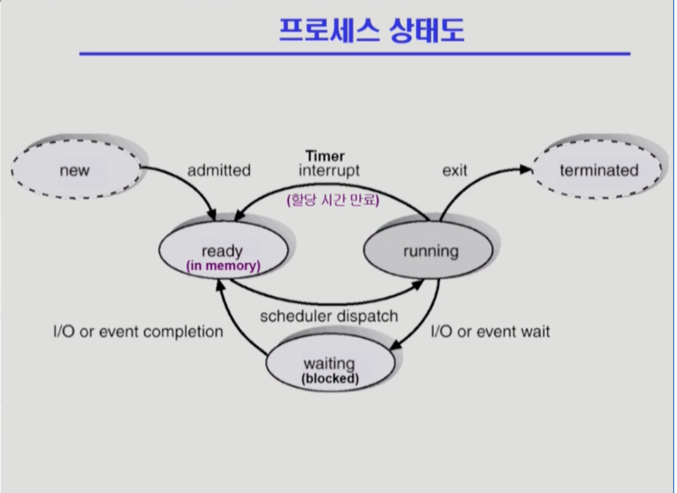 - 프로세스의 상태: Ready -> Running -> Waiting -> Ready